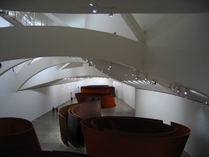 In recent years, however, the boundaries between sculpture and architecture have become increasingly blurred. Architecture has become an object, the ‘Bilbao Effect’ of Frank O. Gehry’s now seminal Guggenheim Museum in Spain. Sculpture, in turn, has co-opted the language of architecture as artists create objects large enough to be occupied or atmospheric works that heavily utilize their architectural spaces. I am not interested here in providing either a thorough synopsis of the shared history of sculpture and architecture, nor do I really have much to add that might be new to the discussion. Entire books have been devoted to topic, and theories like Rosalind Krauss’s “Sculpture in the Expanded Field” created in attempts to explain its intricacies. Yet the relationship remains slippery. Writing in the rather unfortunately named if well-conceived catalogue ArchiSculpture (Fondation Beyeler, 2005), sociologist Dirk Baecker states at length: