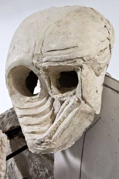 While I know this seems an obvious point, thinking about this group of sculptors in a kind of imaginary dialogue with each other not only emphasized the continuing importance of the simplistic, primal act of taking ‘x’ in one’s hands and ending up with a completely different ‘y’, but also the significant role played by materials in that equation. This is something Houseago has manipulated and exploited within his work, creating objects in clay, plaster, and bronze and frequently confusing our ability to visually distinguish between them; as in the work Walking Figure I (City), visible on the left that is a bronze piece that looks like unfired clay. Houseago stated in an interview from 2012: